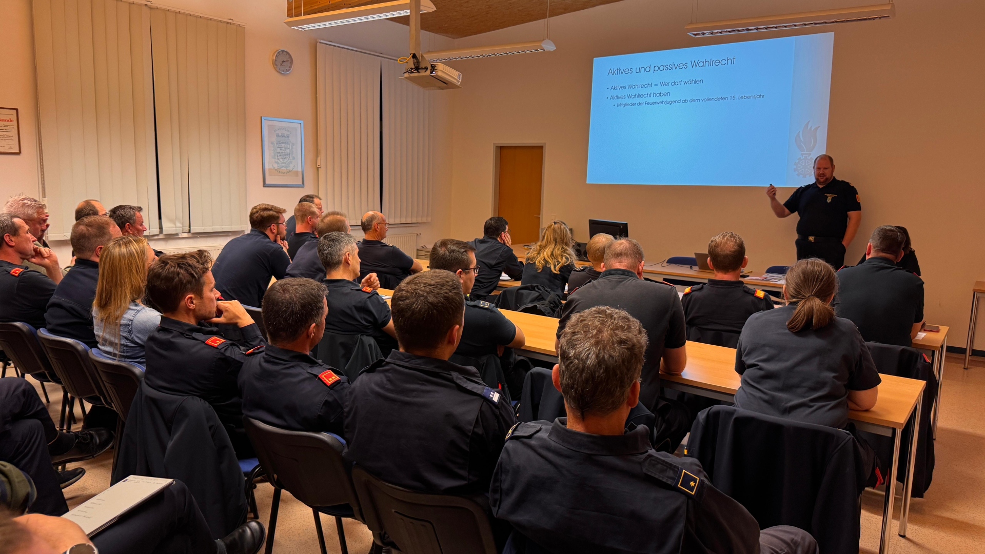 Die Schulung begann um 19:00 Uhr und bot den Teilnehmerinnen und Teilnehmern Gelegenheit, Fragen zu stellen und sich über Erfahrungen aus vergangenen Wahlperioden auszutauschen. Ziel war es, die gesetzlichen und organisatorischen Grundlagen zu festigen, um einen reibungslosen Ablauf der anstehenden Wahlen in den Feuerwehren des Abschnitts zu gewährleisten.