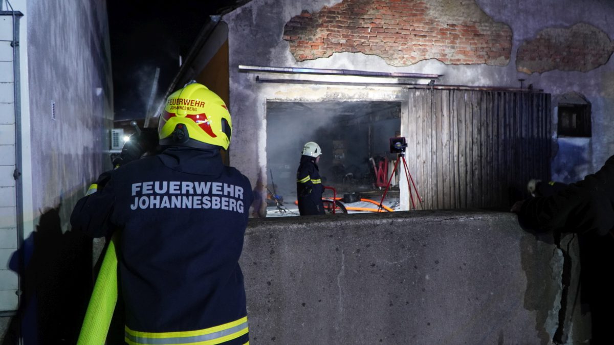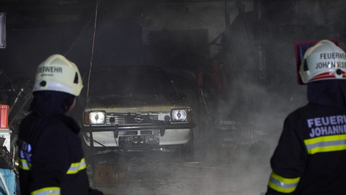 Der Innenraum einer Garage stand in Vollbrand, inklusive eines darin abgestellten PKW und Motorrads. Zusätzlich befanden sich Gasflaschen in der Garage, die ein erhebliches Gefahrenpotenzial darstellten – glücklicherweise kam es zu keiner Explosion.