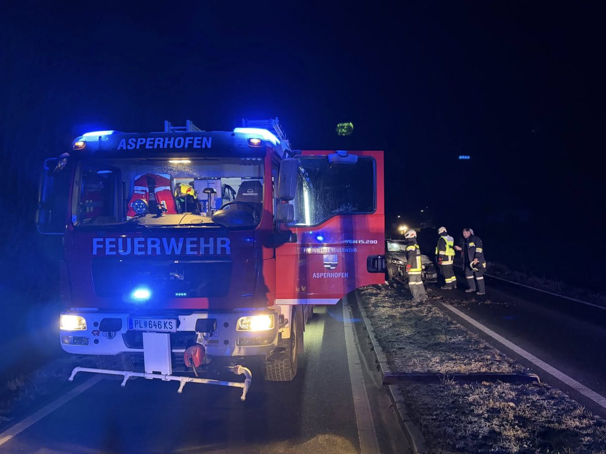 In der Nacht des 29.11.2025 wurde die Feuerwehr Asperhofen kurz vor 3:00 Uhr zu einer PKW-Bergung auf die B19 alarmiert. Ein Fahrzeug kam nach der Kollision mit einem Verkehrsschild und einer Straßenbeleuchtung auf einer Verkehrsinsel zum Stillstand.