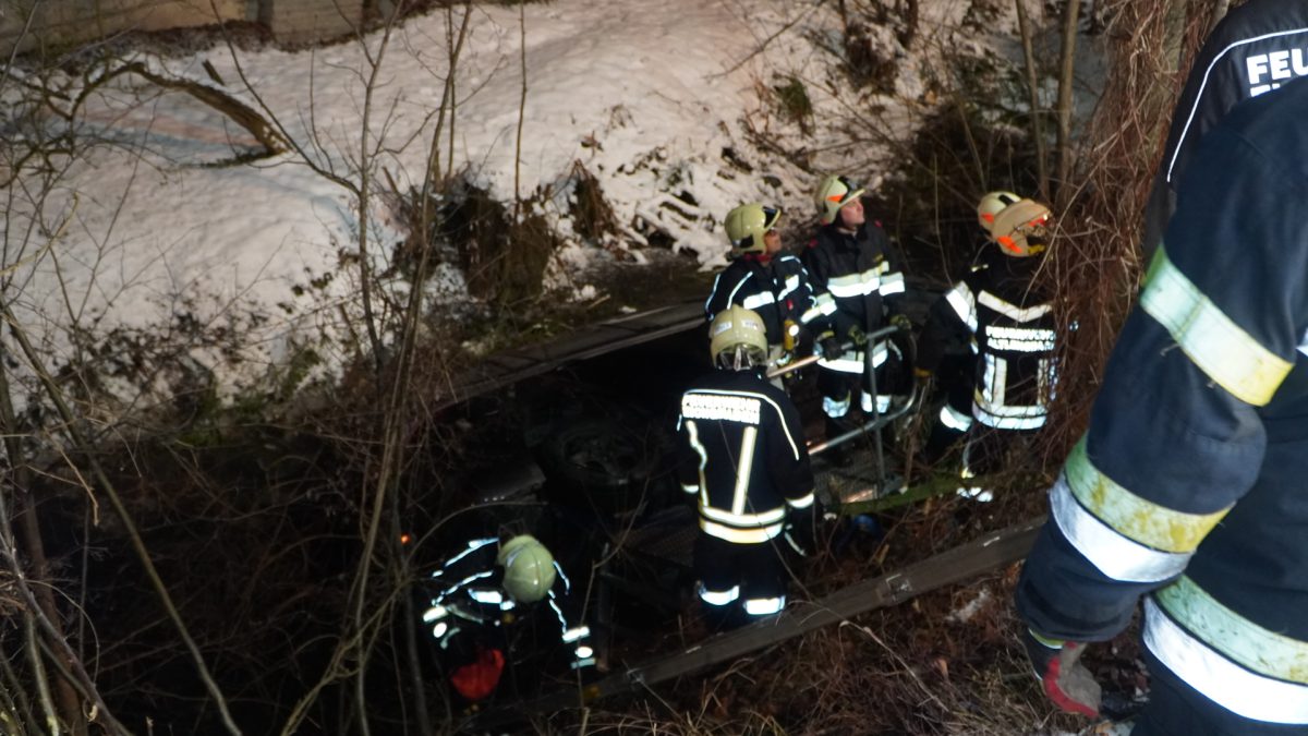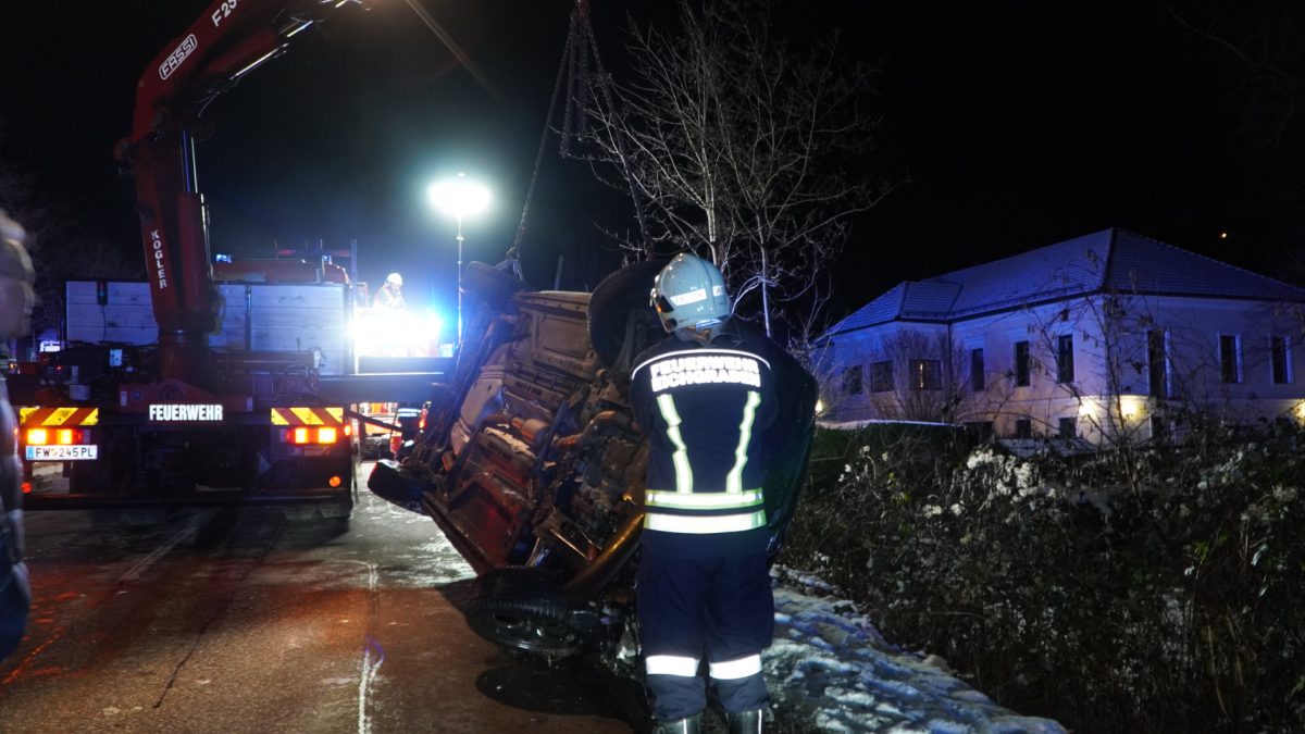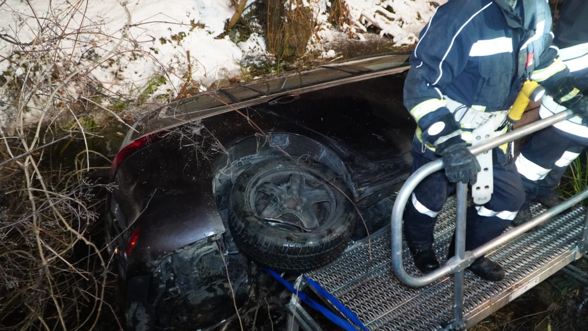 Am 30.12.2025 gegen 17:40 Uhr wurden die Feuerwehren Eichgraben und Altlengbach zu einem Verkehrsunfall mit Menschenrettung in die Wiener Straße nach Eichgraben alarmiert. Aus bislang unbekannten Gründen kam die Lenkerin eines PKW, aus Richtung Pressbaum kommend, von der Fahrbahn ab und landete im Bach. Dabei überquerte sie die Gegenfahrbahn, durchfuhr das Gestrüpp am Fahrbahnrand und kam anschließend auf der Fahrerseite zum Liegen.