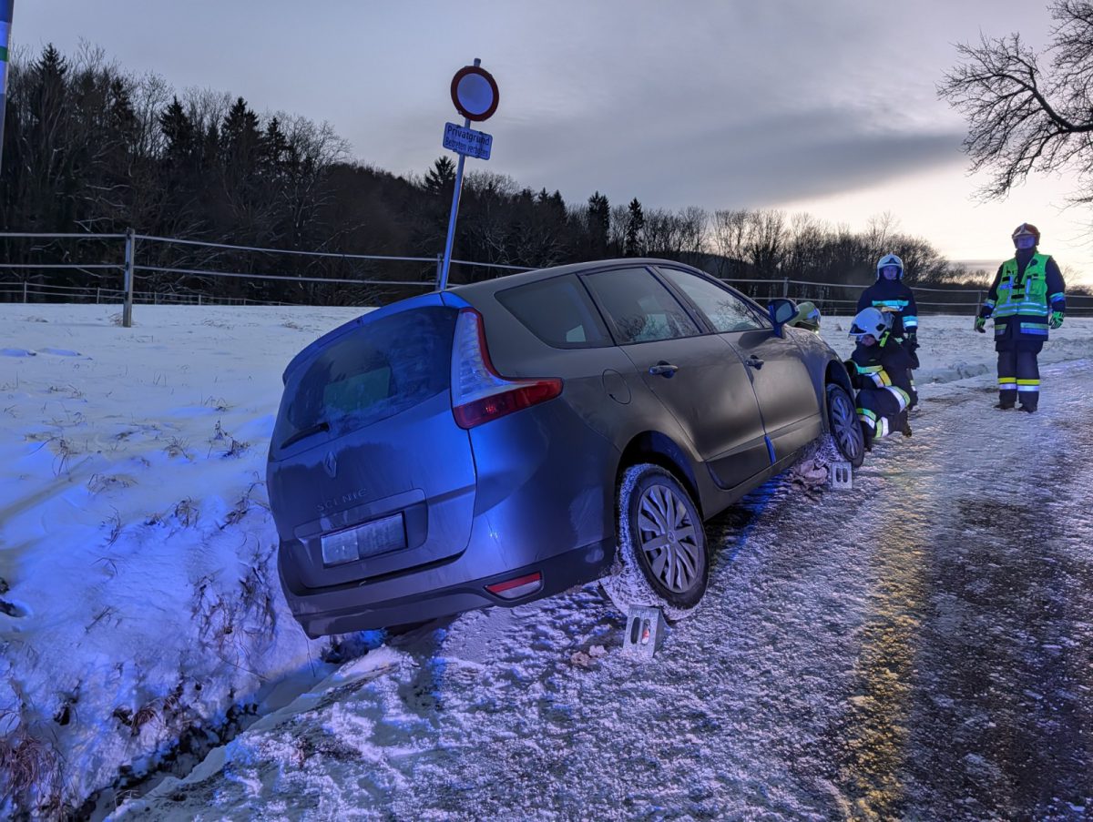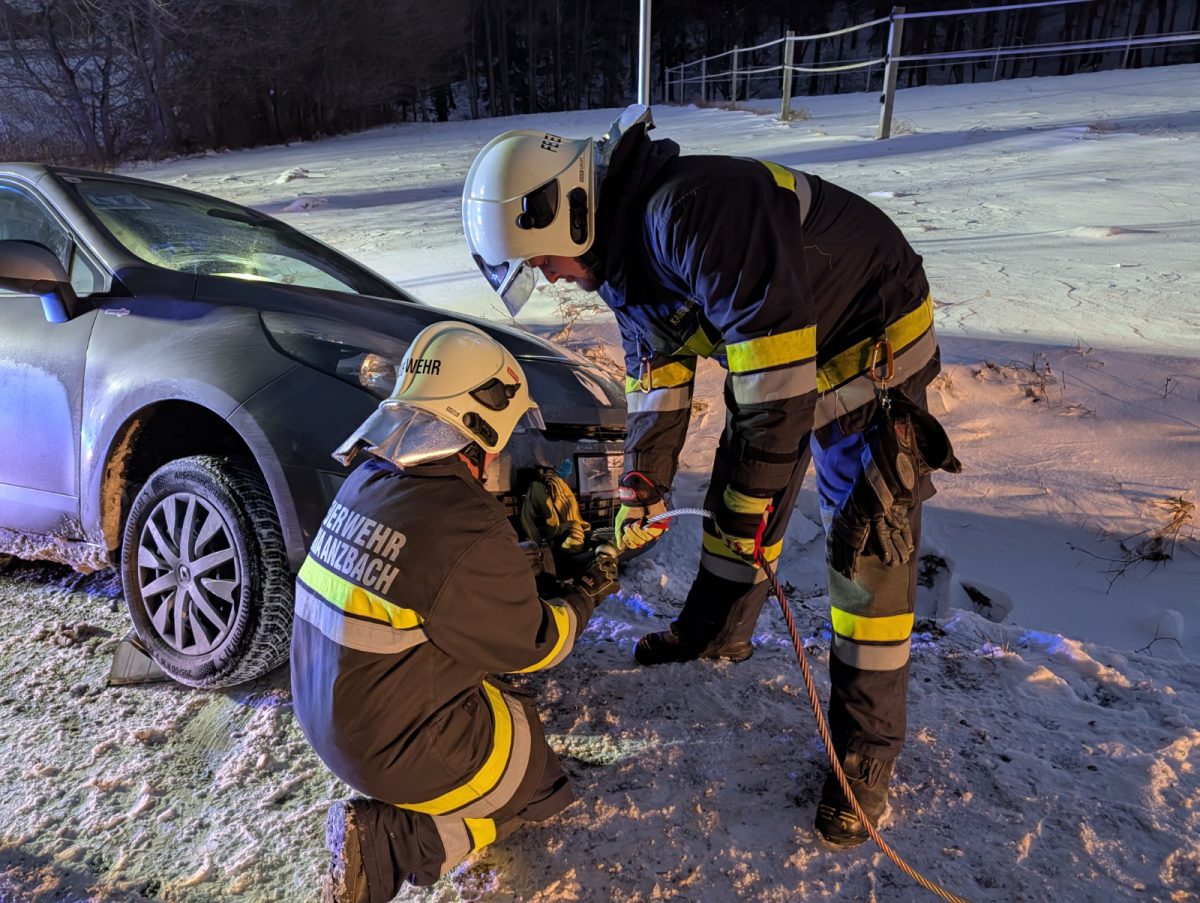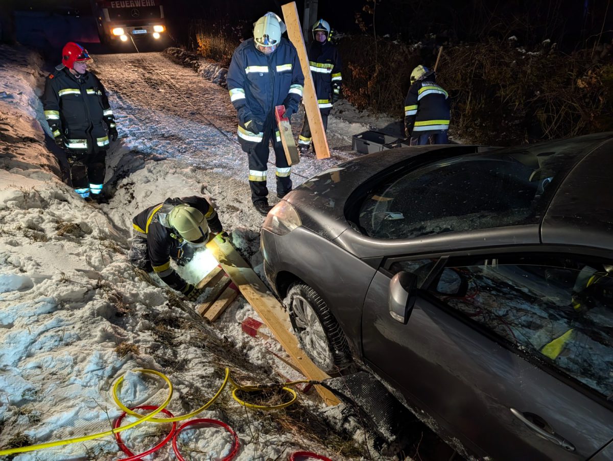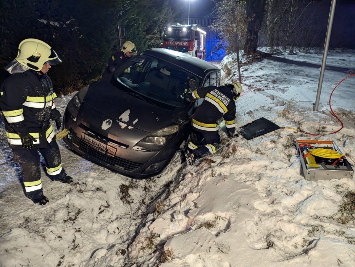 Kaum vom vorherigen Einsatz eingerückt, wurden die FF Maria Anzbach erneut per Pager alarmiert. Dieses Mal war ein PKW auf der Tannenhofstraße in Maria Anzbach von der Fahrbahn abgekommen und in den Straßengraben gerutscht.