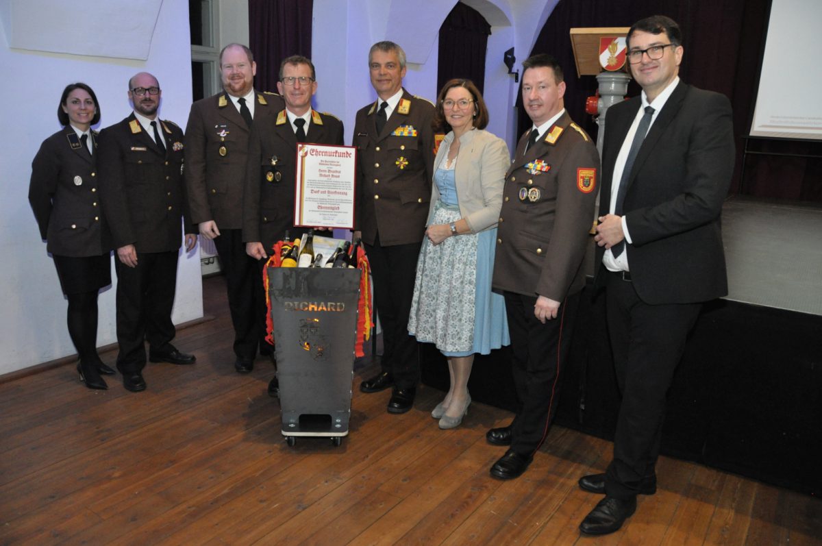 Für ihre langjährige Tätigkeit wurde besonderer Dank ausgesprochen: EHBI Michael Schröder und EHBI Martin Kugelberger für viele Jahre als Unterabschnittsfeuerwehrkommandanten sowie OLM Wolfgang Süss als Abschnittssachbearbeiter Feuerwehrjugend und LM Karin Kropatschek als Abschnittssachbearbeiterin Atemschutz-Stellvertreterin.